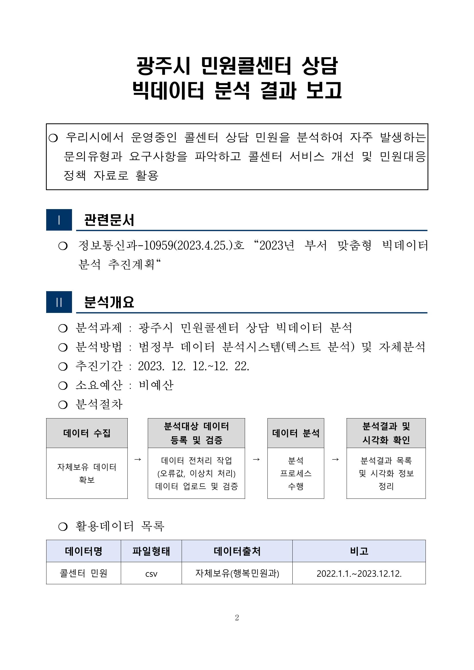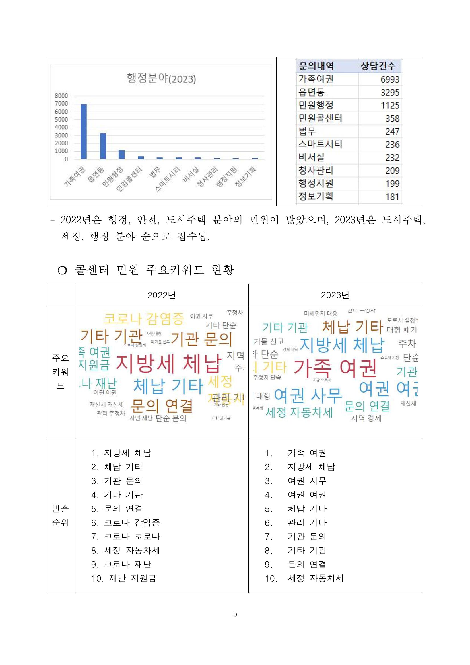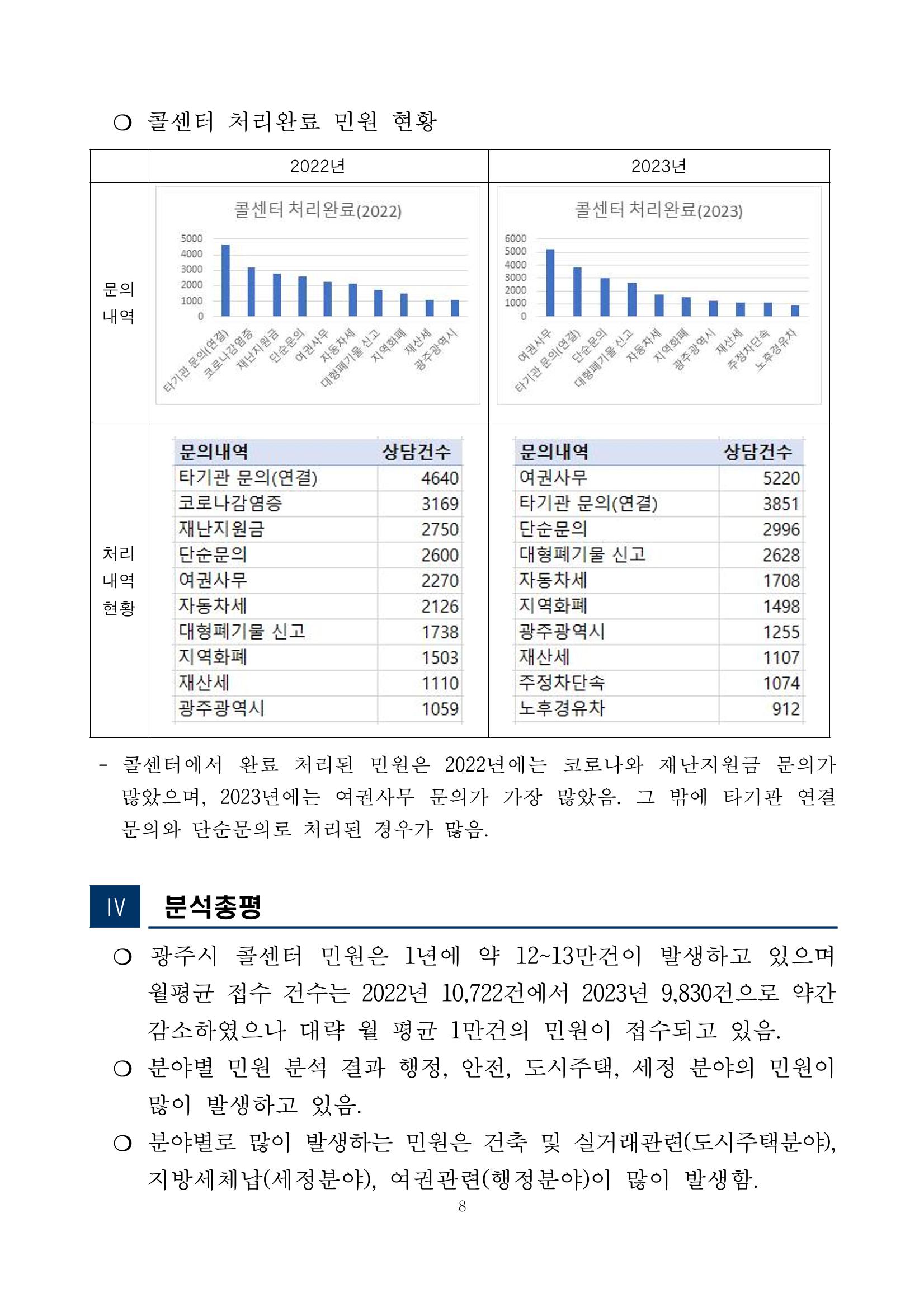 광주시 민원콜센터 상담 빅데이터 분석 결과