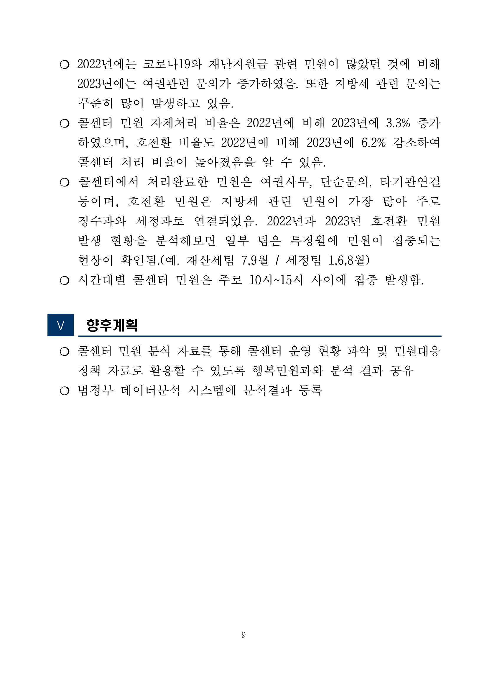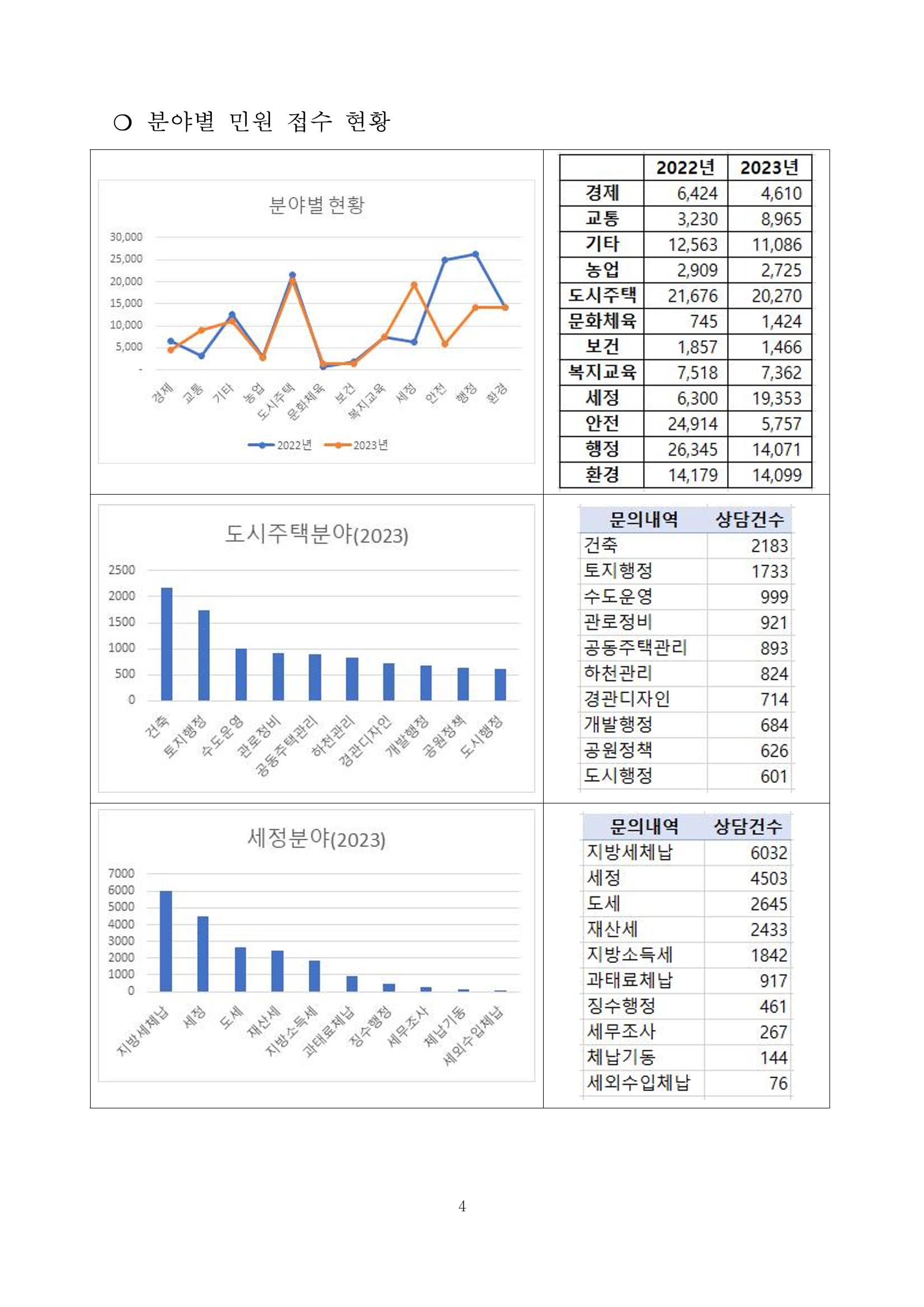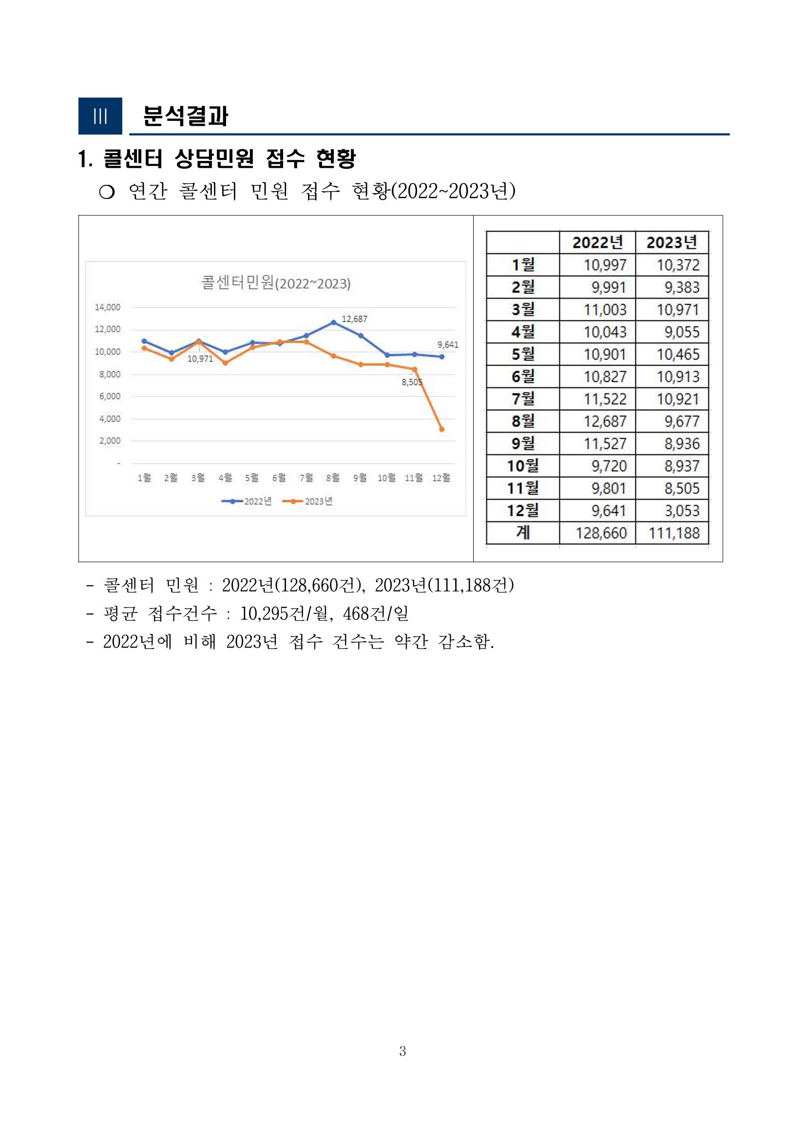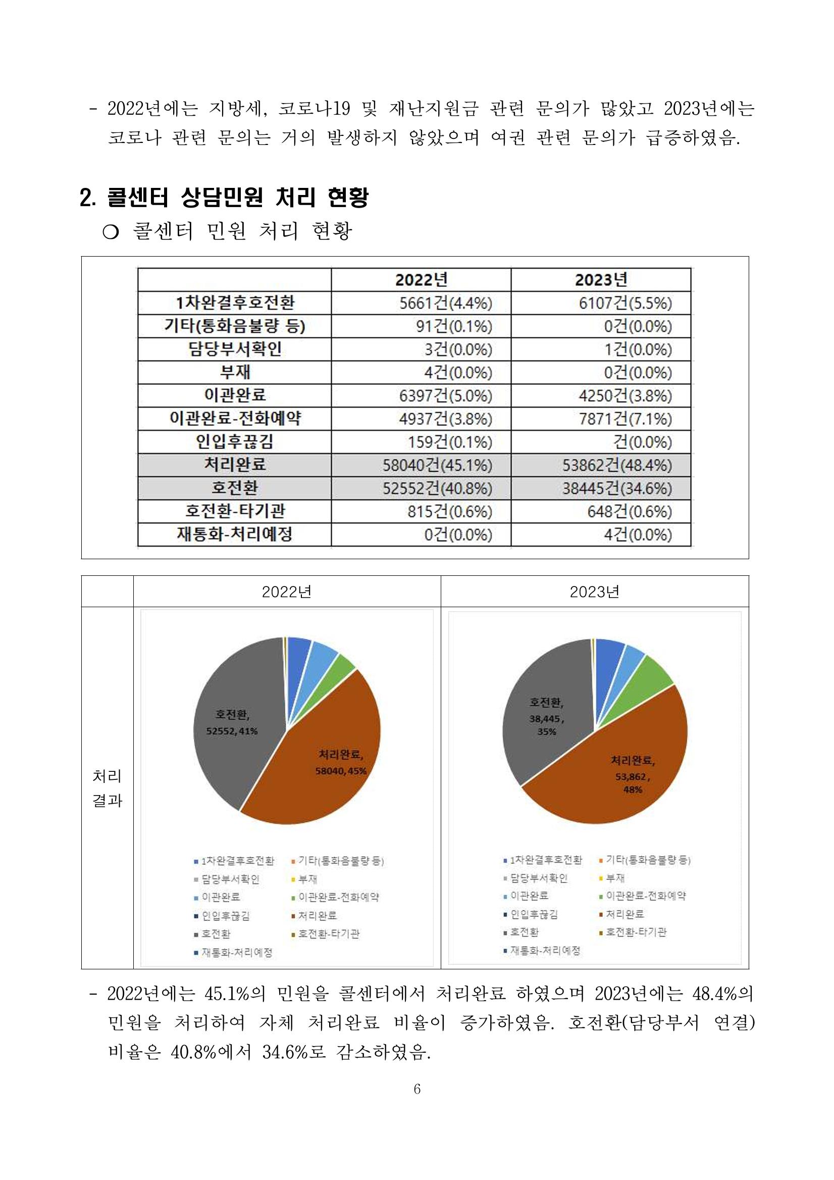 광주시 민원콜센터 상담 빅데이터 분석 결과